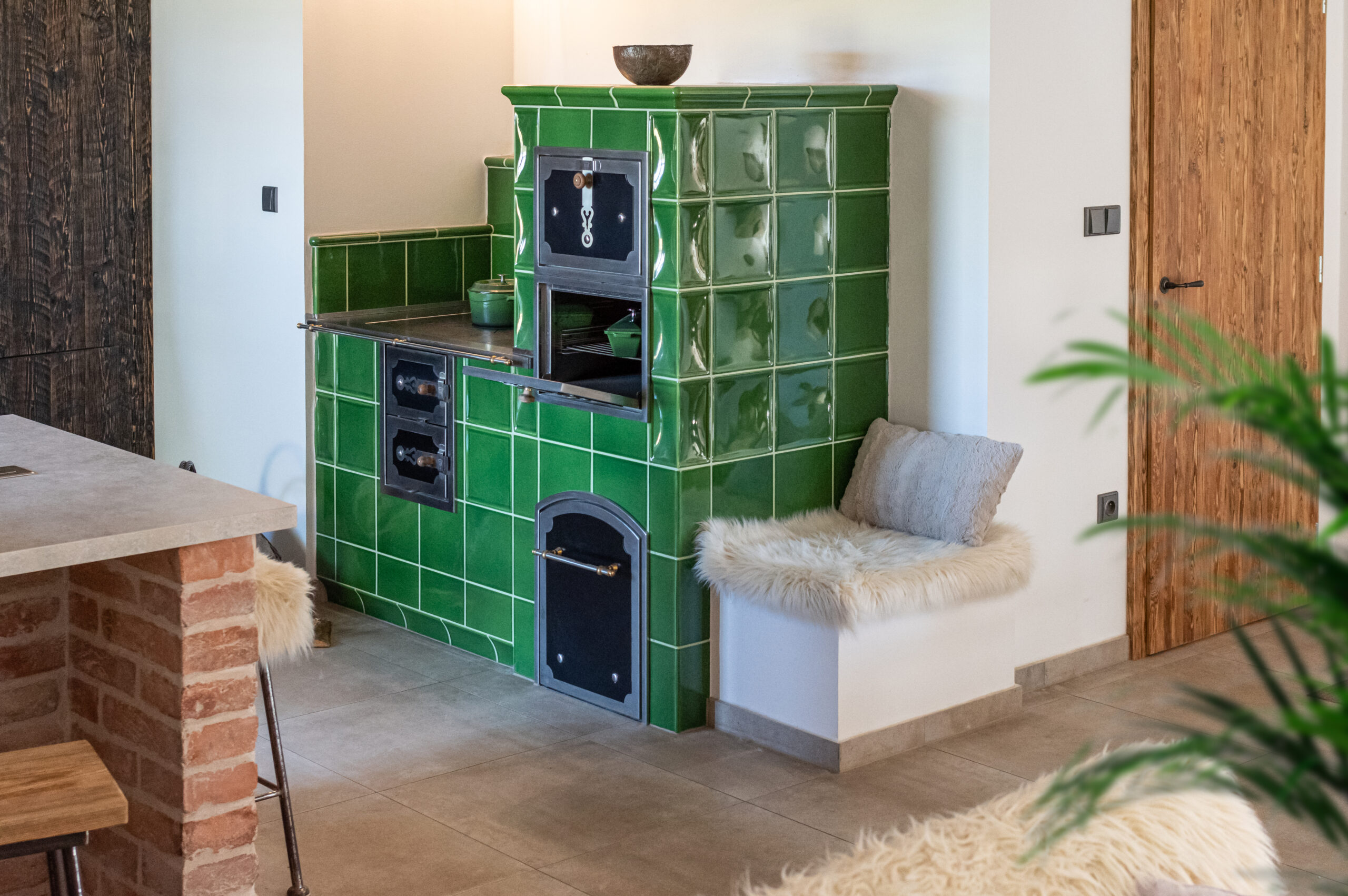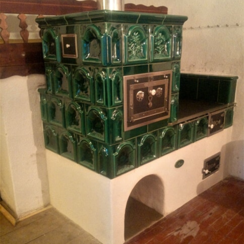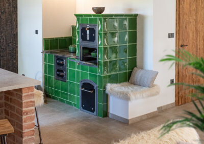 Realizace kachlových a omítaných sporáků.